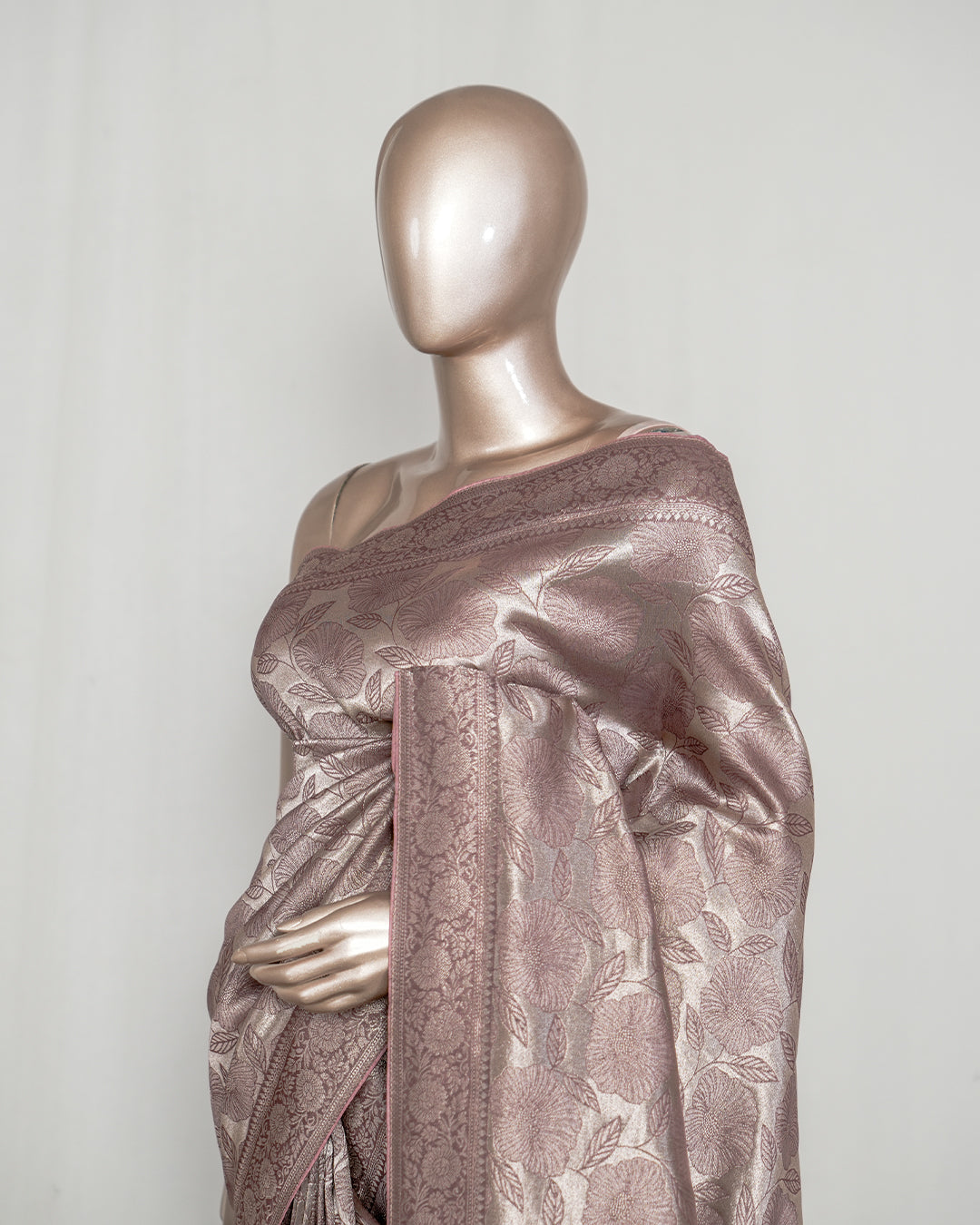 Dusty Lavender Jacquard Banarasi semi silk Saree SAN4551