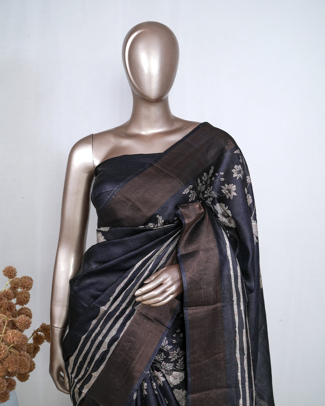 * Printed pallu with coordinated stripe and floral motifs
