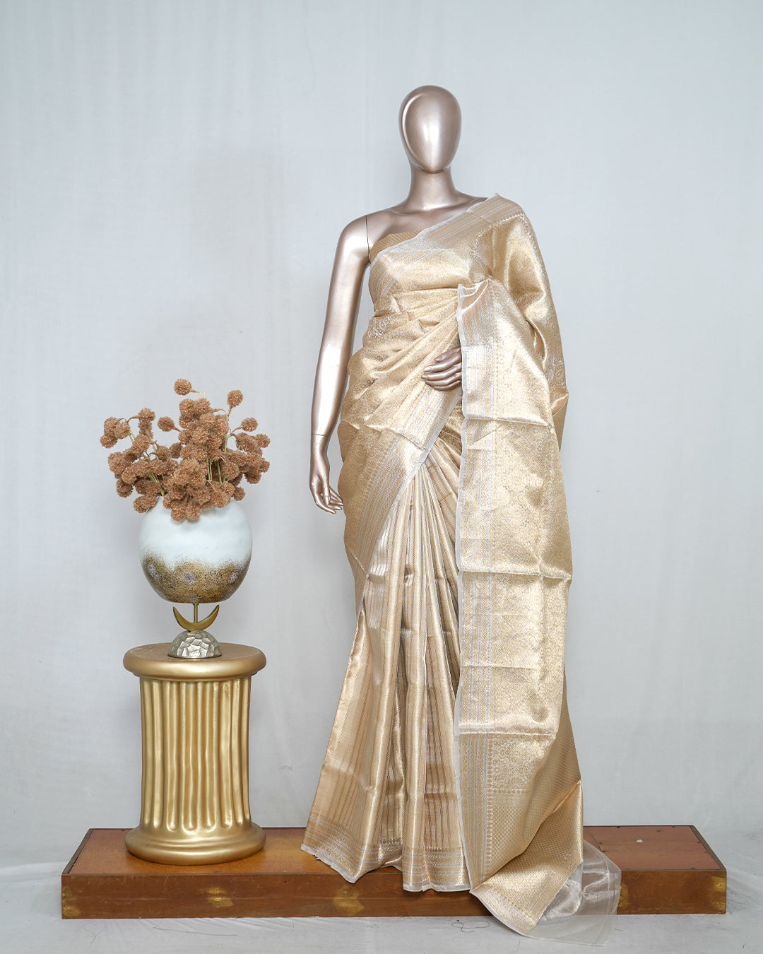 * Plain golden tissue pallu