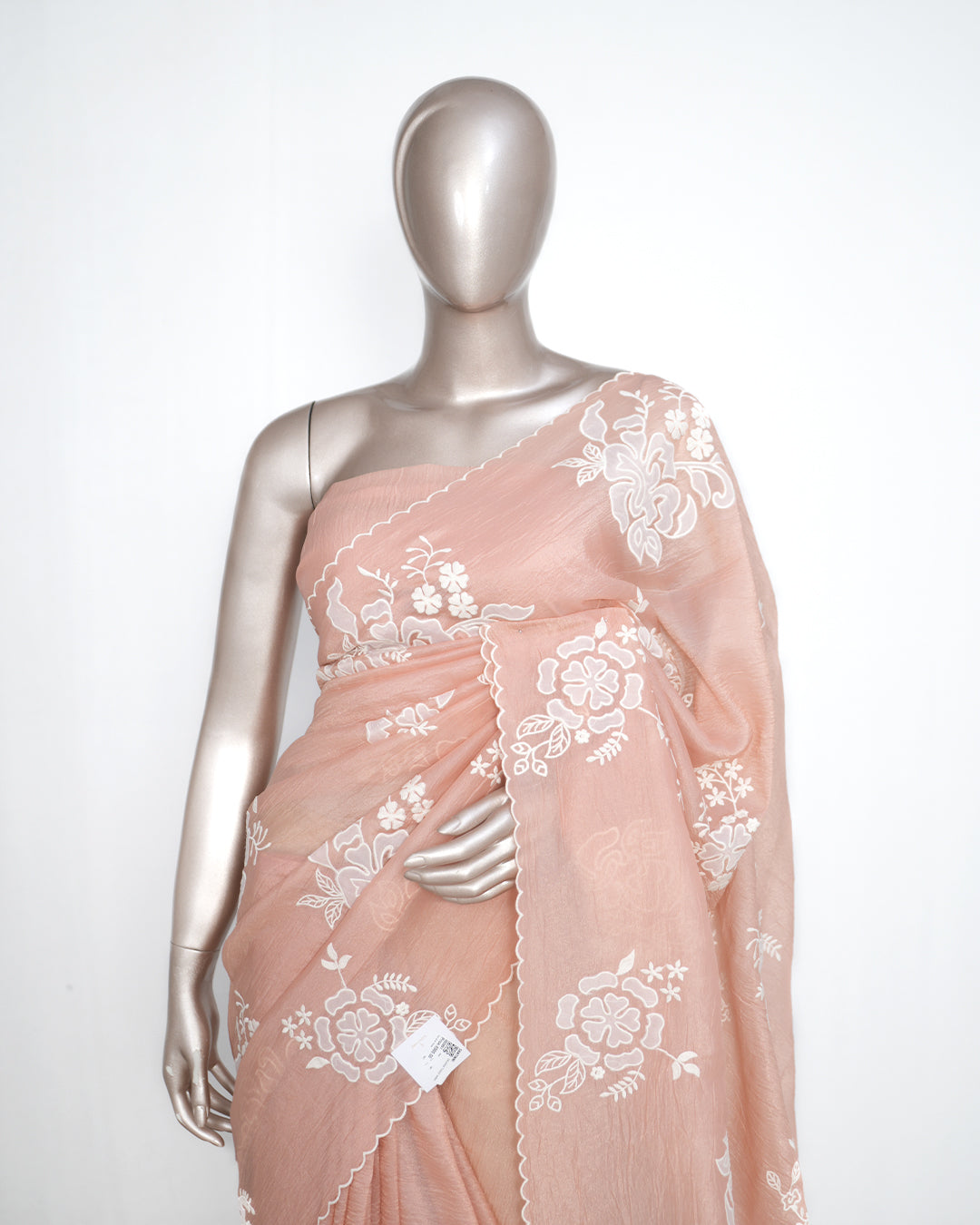 Blush Peach Crushed Organza Saree – Floral Elegance SAN3991