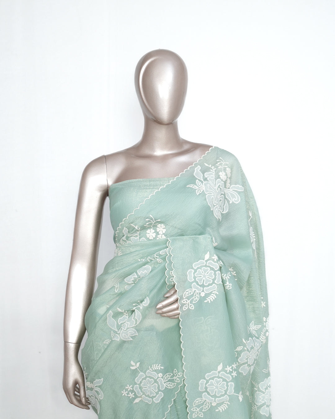 * Fully embroidered flowing pallu