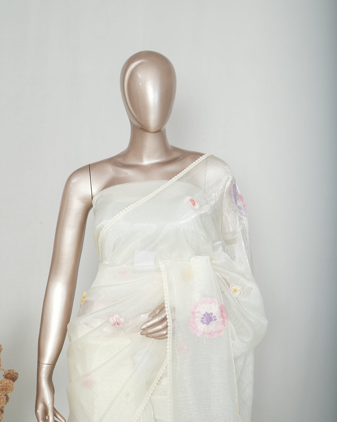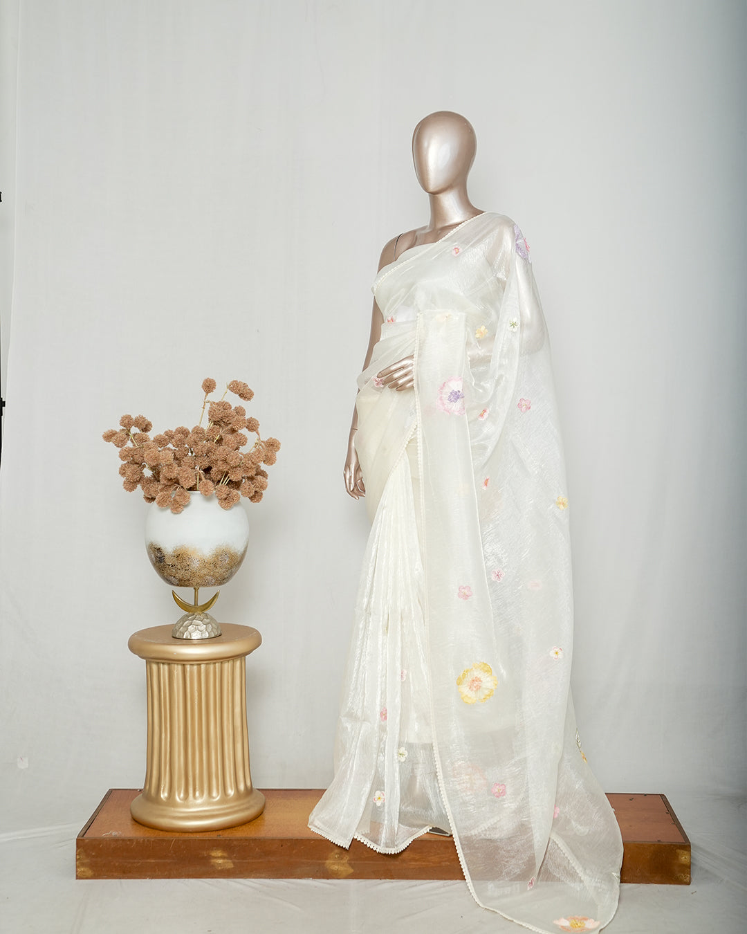 Ivory Crystal Organza Saree SAN4343